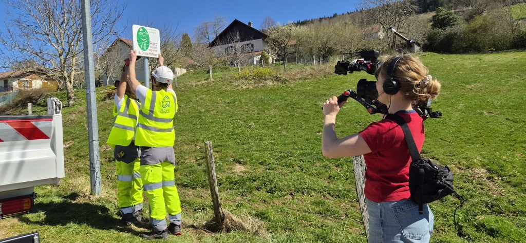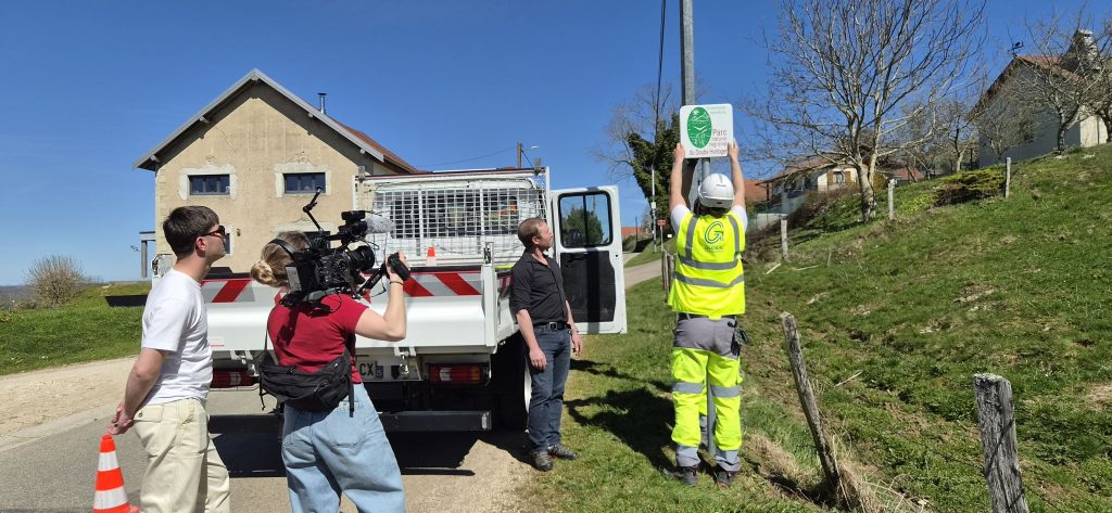 La pose du panneau a été réalisée à Plaimbois-Vennes en présence de Monsieur Jérémy Boillot, Maire de Plaimbois-Vennes et d’Océane Vincent, chargée de communication du Parc naturel régional du Doubs Horloger